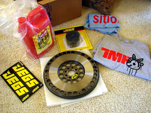 Ended up going with a lightweight flywheel from XTD. (12.5 lbs vs. i think double that stock = WEEEEEE)