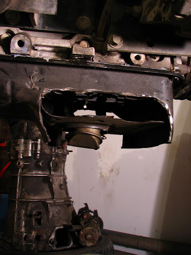This last picture is of it with the engine sitting in the bay so i can see how low it’s still hanging below the cross member. To me it looks to be about flush with it or it just slightly hangs below the cross member.