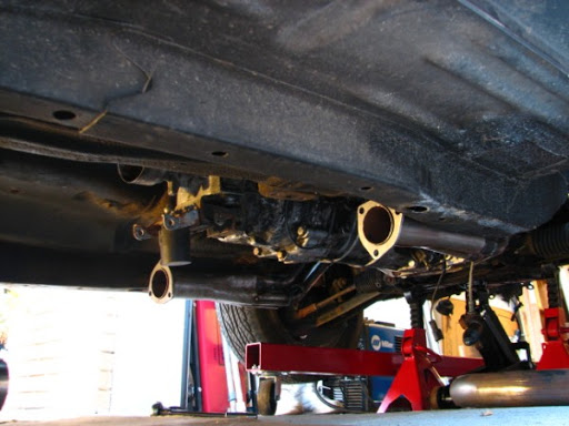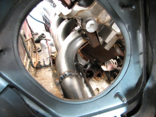 ^ Passenger side mount in car. Notice how close the exhaust ports are to the frame rails.