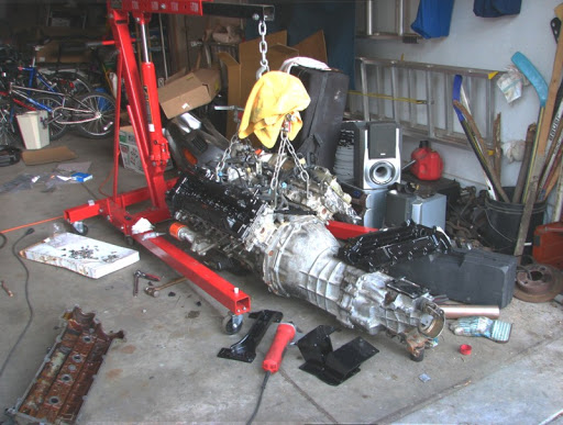 ^ Here is the engine out of the car. Unfortunately this engine did not have the guides replaced and they broke and became lodged in the oil pickup tube. The heads looked burnt and I became pissed. So I could get the heads cleaned for free but the valve seals would have to be replaced