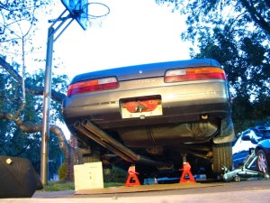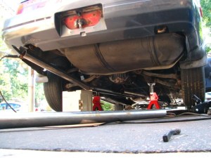 YAY!! this is a sweet picture. making sure the collectors didn’t point up into the floor pan. This was a guestimate kind of cuz i still didn’t have the mounts back from the powder coater…